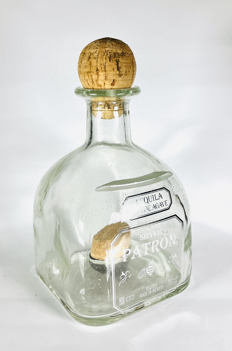 Piggy bank made from 0,7 liter Patron Silver tequila.