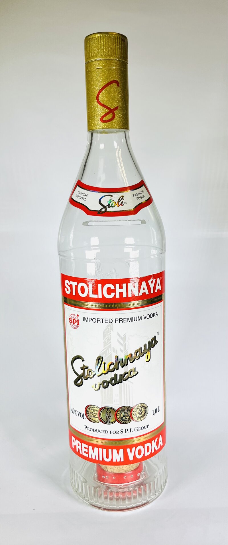 Piggy bank made from 1 liter Stolichnaya vodka.